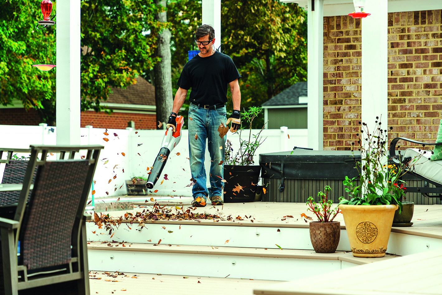 The most powerful battery-powered blower in the STIHL AK System, the BGA 60 blower provides 65% more blowing force than the BGA 57, while delivering a range of features for comfort and convenience. This premium homeowner blower is ideally suited for low-noise environments and easily stores with a convenient built-in hanging slot. A variable-speed trigger and boost mode help users clear grass clippings, leaves, and other yard debris from hard surfaces such as balconies, driveways, and sidewalks. A one-touch adjustable blower tube allows users to easily change the blower tube length to adjust to different user heights and to permit access hard-to-reach areas. A metal ring on the blower nozzle provides protection against wear and creates a high-quality look. The BGA 60 comes ready for the STIHL Smart Connector, so users can add a performance tracker that sends tool data to their smartphone or other device via Bluetooth® technology. View Our Usage Chart