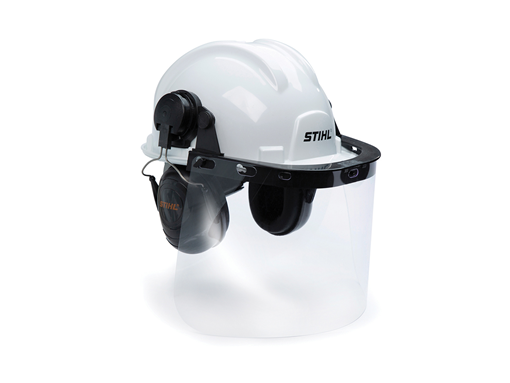 STIHL® Construction Hard Hat System Also available as a hard hat only. Note: Goggles or protective glasses meeting ANSI Standard Z87.1 must be worn under face screen and shield for primary eye protection
